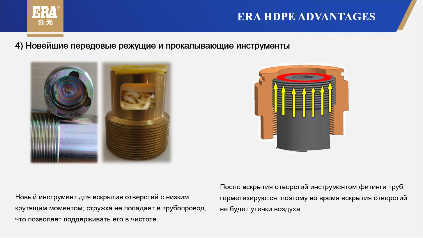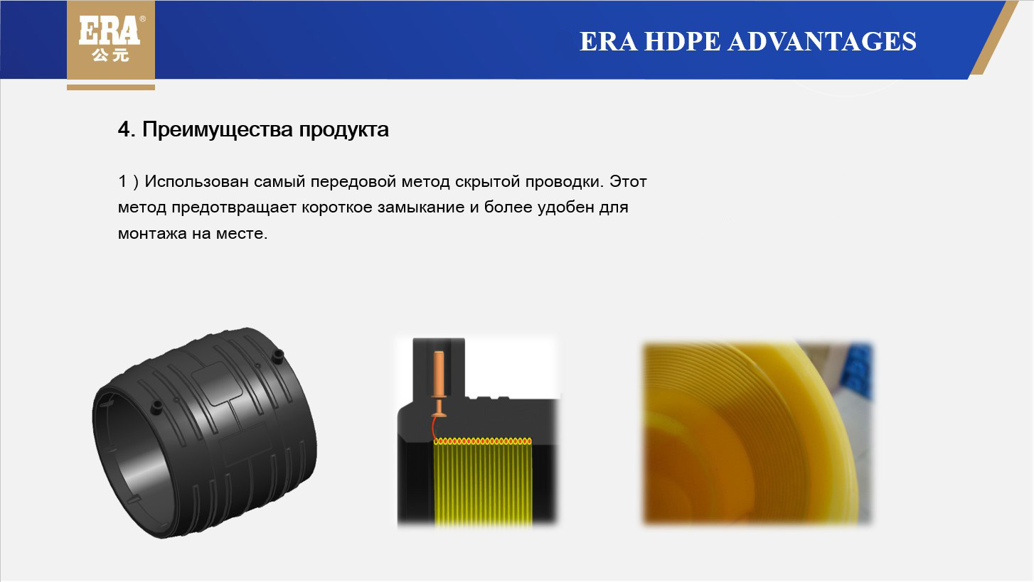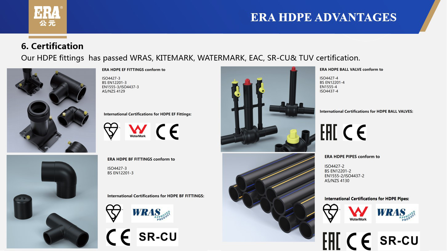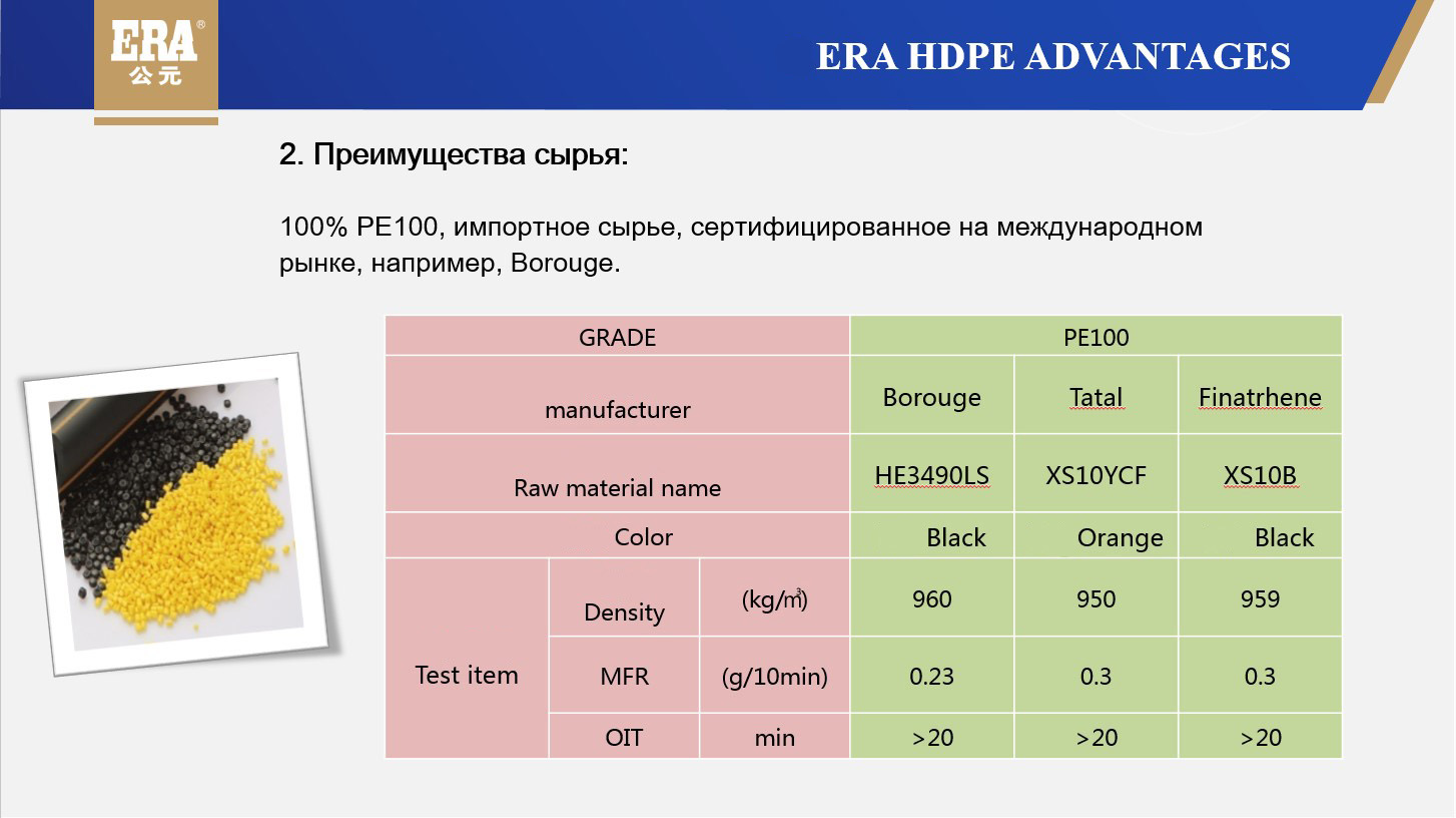 3. Все сырье, используемое для производства фитинга ERA, составляет 100% ПЭ100, импортное сырье, cертифицированное на международном рынке.