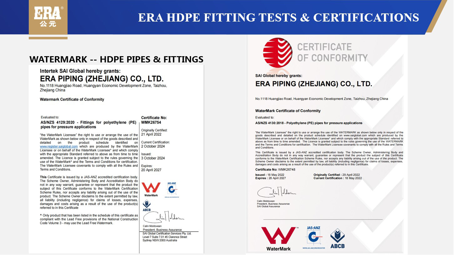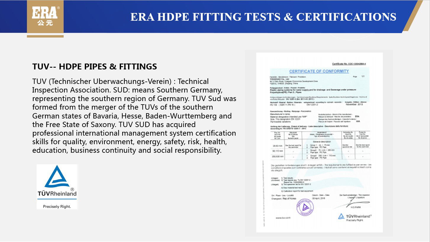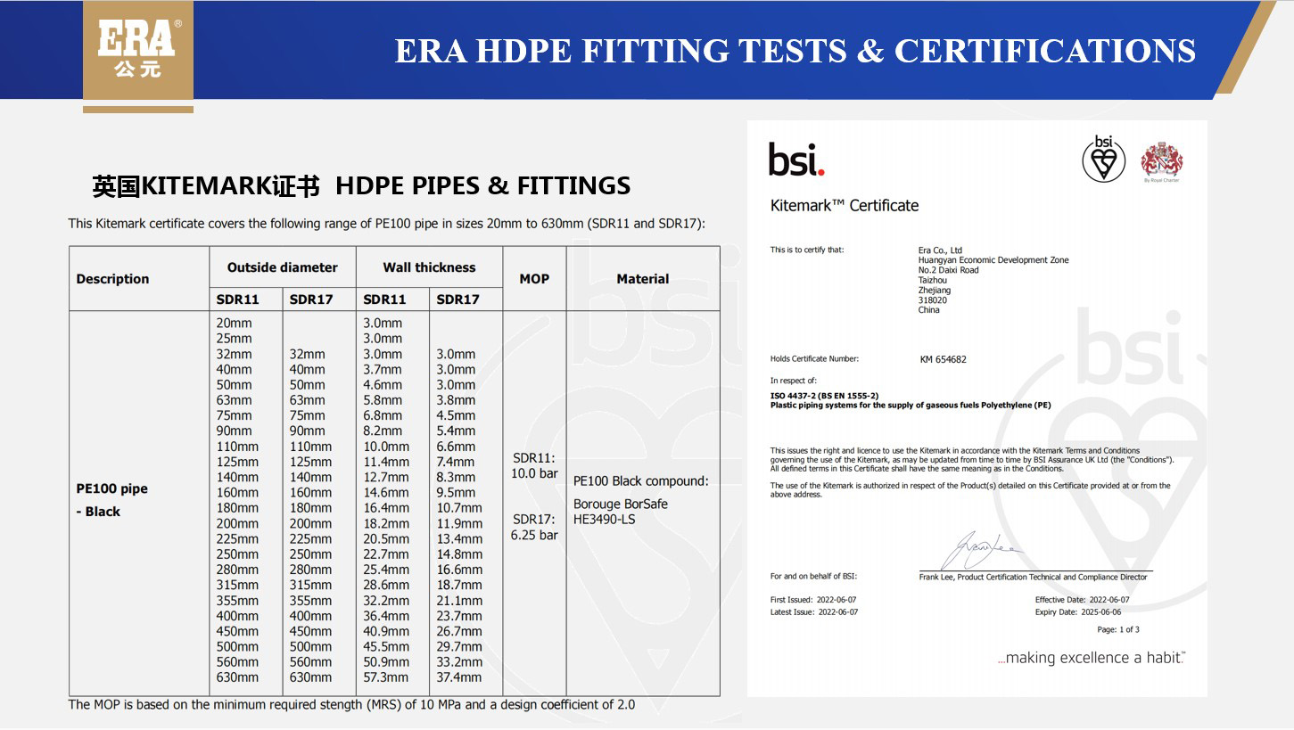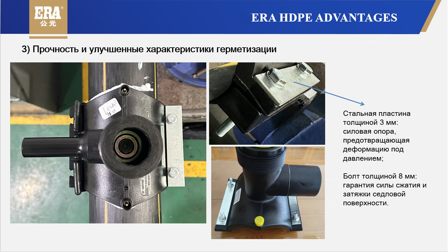 3. Все сырье, используемое для производства фитинга ERA, составляет 100% ПЭ100, импортное сырье, cертифицированное на международном рынке.